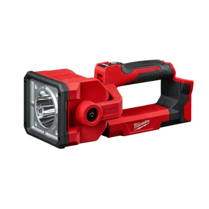 La Milwaukee M18 LED Search Light 2354-20 te da lo mejor en iluminación versátil y profesional. Su cabeza pivote permite enfocar áreas lejanas o inundar zonas cercanas. Ofrece 1.250 lúmenes y puede alcanzar más de 700 yardas en modo spot. Cuenta con cuatro modos de luz (Spot, Flood, Spot + Flood, Estroboscópico), ideal para distintas necesidades. Con una batería M18 REDLITHIUM XC 5.0, puedes alcanzar hasta 7 horas en modo spot y 4 horas en modos flood / spot + flood. La linterna es robusta, con grado de protección IP54 contra agua y polvo, y pesa 3,63 lb (aproximadamente 1,65 kg) solo como herramienta.